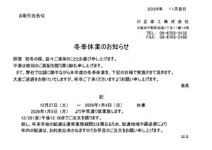 HOME > お知らせ 一覧 > 冬季休業のお知らせ