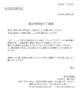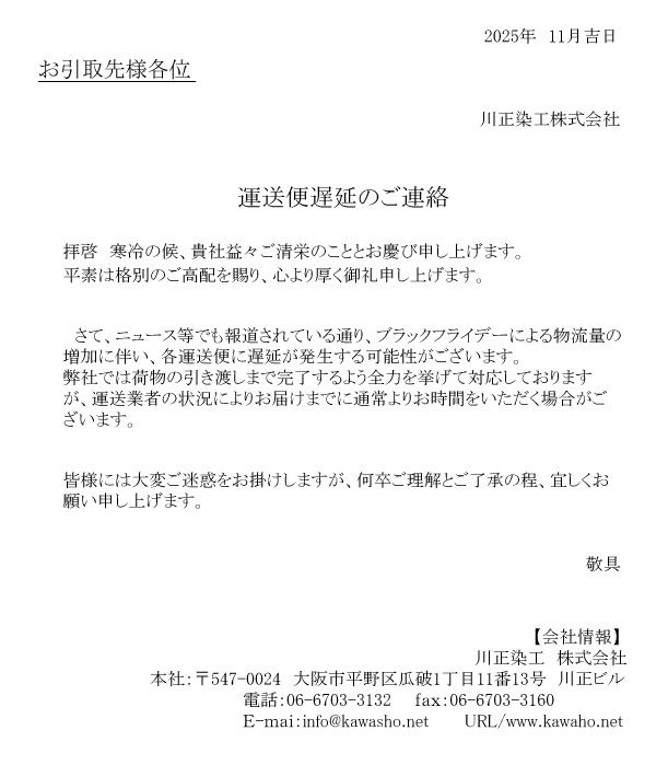 HOME > お知らせ 一覧 > 運送便遅延のご連絡